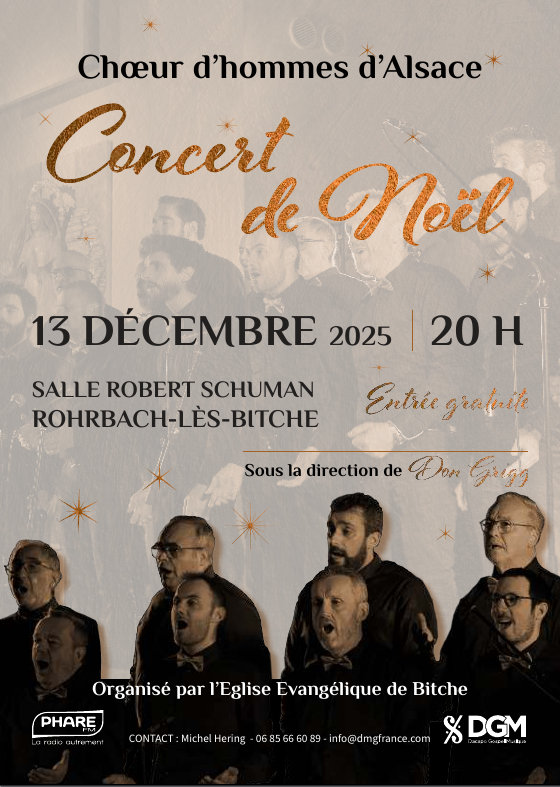 Fête de Noël 2025 – concert de Noël – choeur d’hommes d’Alsace -Don Grigg